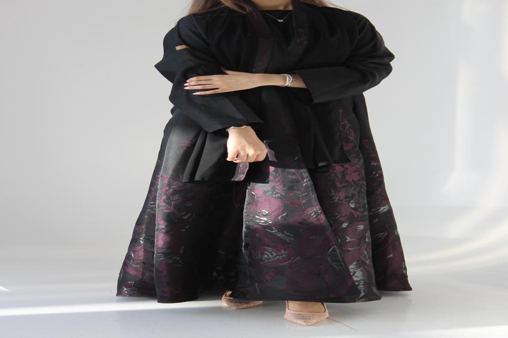 عباية أنيقة مصممة من قماش الجاكار تأتي بقصة كلوش واسعة تمنحك إطلالة راقية وانسيابية